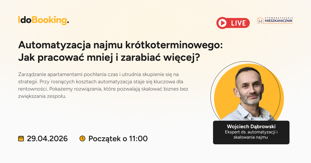 Związany z IdoBooking, gdzie nadzoruje procesy wspierające zarządców na każdym etapie - od wyboru odpowiednich narzędzi, przez ich wdrożenie, aż po codzienną optymalizację pracy. To doświadczenie pozwala mu bezbłędnie diagnozować 'wąskie gardła' w zarządzaniu apartamentami. Pokazuje, jak za pomocą sprawdzonych automatyzacji przekształcić chaotyczną obsługę gości w poukładaną i zyskowną strukturę.