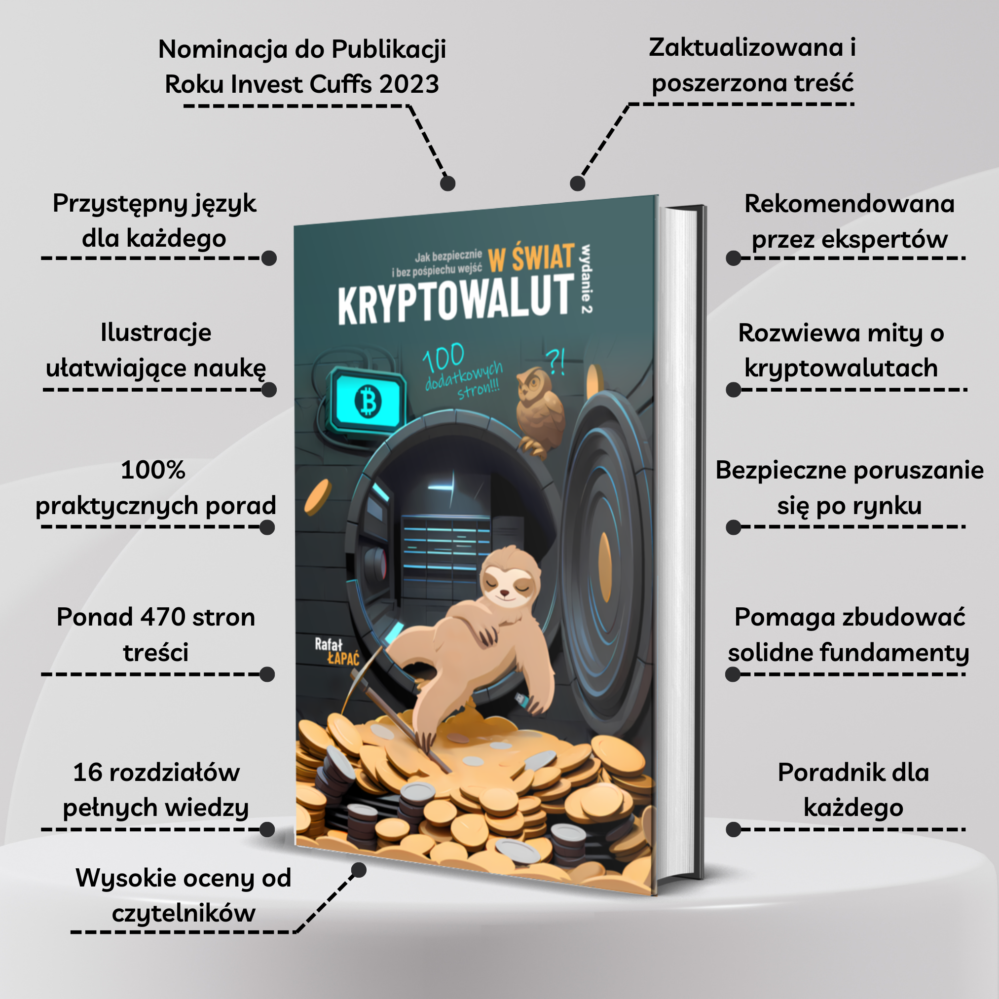 Książka oferuje pełne spektrum wiedzy – od tajemniczej historii Satoshiego Nakamoto po zaawansowane strategie portfelowe. Dowiesz się m.in.: