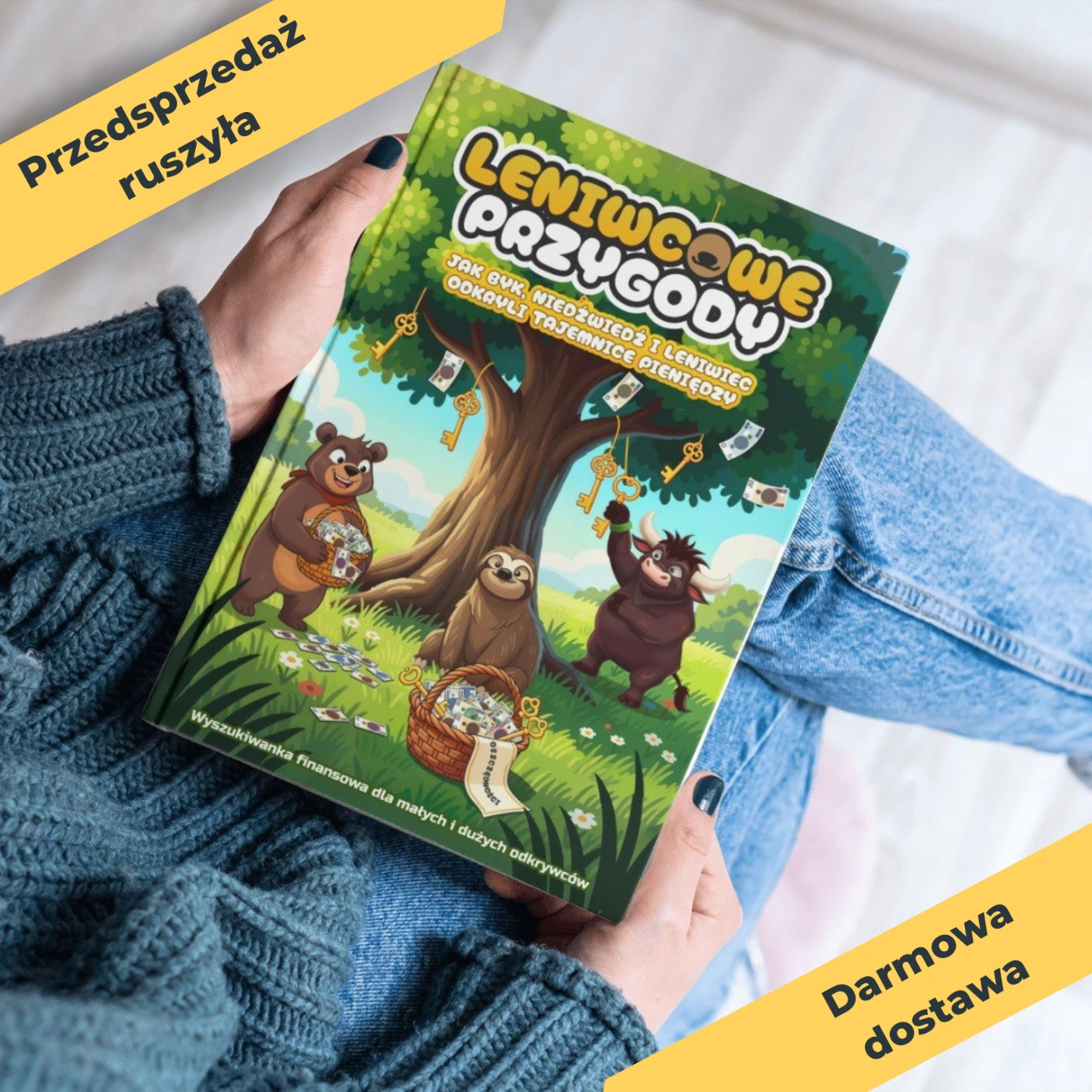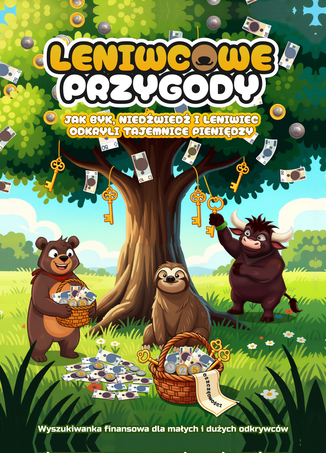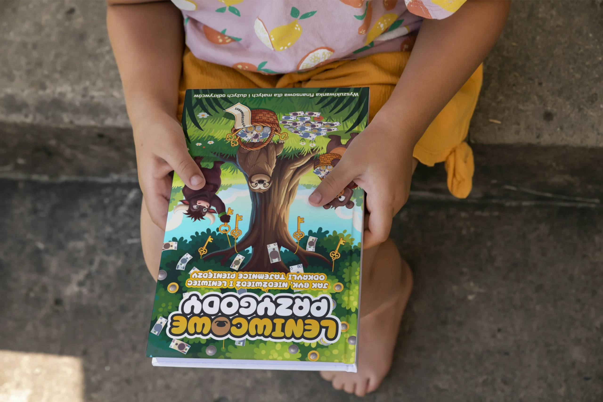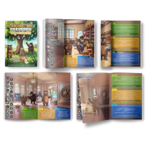 Leniwcowe Przygody rozwiązują ten problem. To wyszukiwanka: dziecko szuka ukrytych przedmiotów na pięknych ilustracjach, a przy okazji poznaje podstawy finansów. Bez nudy, bez „lekcji”, bez oceniania. Wy szukacie razem skarbu, a wiedza przyswajana jest mimochodem.